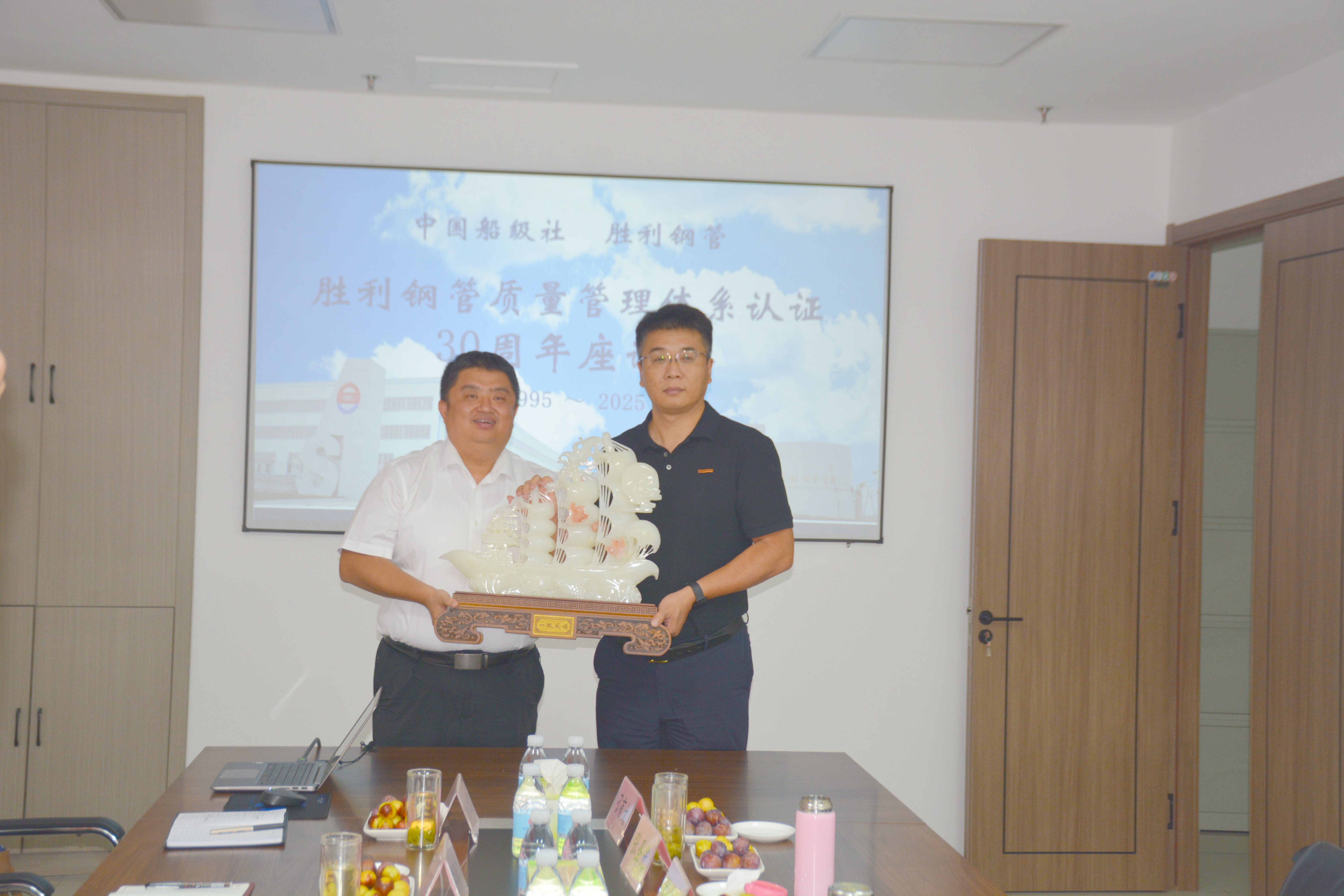 ? 2025 年 8 月 31 日,山東勝利鋼管有限公司(以下簡稱“山東勝利鋼管”)與中國船級社質(zhì)量認(rèn)證有限公司(以下簡稱 “中國船級社”)質(zhì)量管理體系認(rèn)證合作 30 周年座談會,在勝管集團(tuán)會議室隆重舉行。本次座談會以 “質(zhì)為本 責(zé)為魂 效為翼,三十年認(rèn)證賦能企業(yè)長青” 為核心主題, 共憶合作歷程,共話未來發(fā)展。
